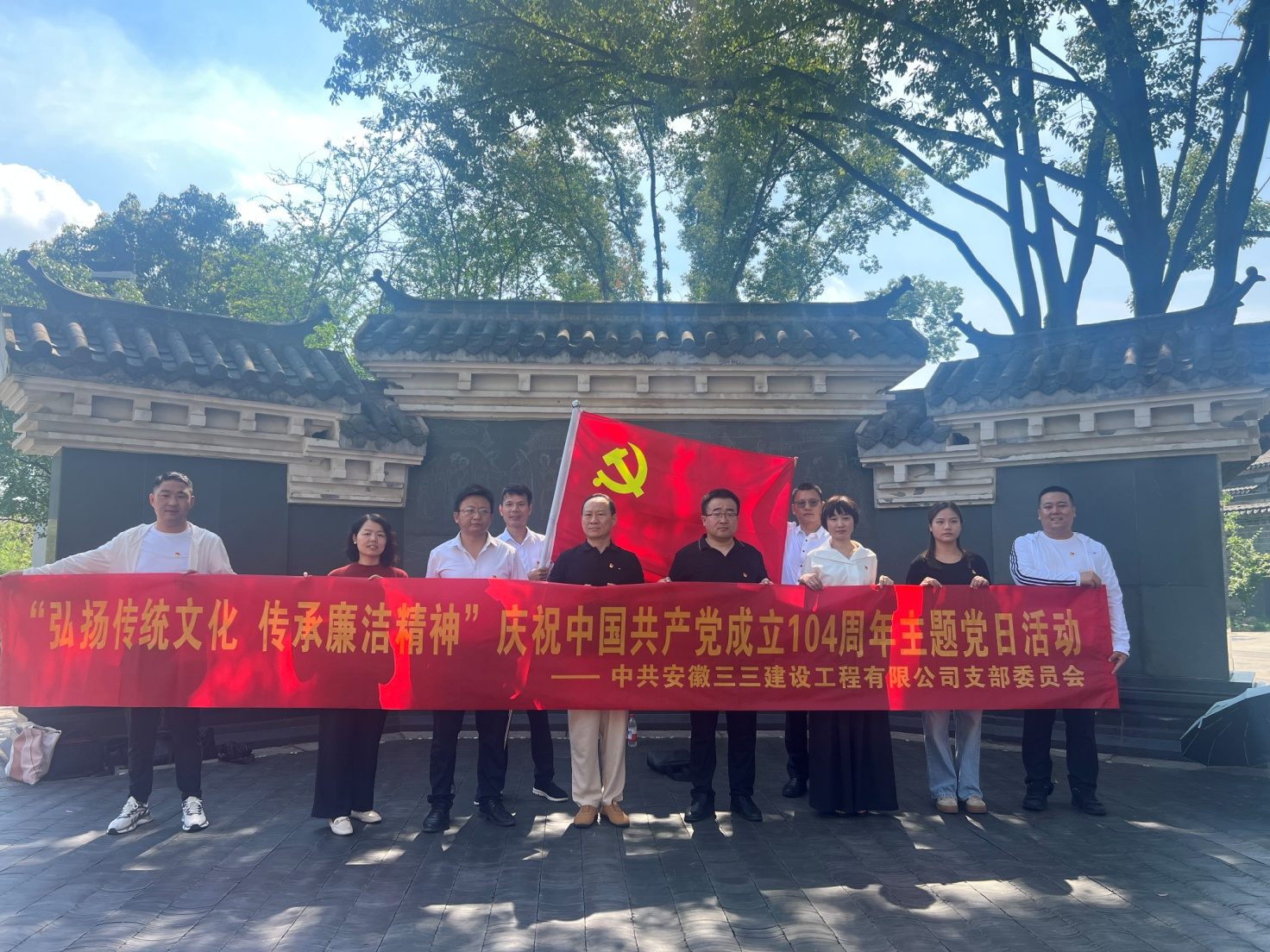 為慶祝中國共產黨成立104周年,深入學習貫徹習近平總書記關于黨風廉政建設的重要論述,全面落實中央八項規定精神,2025年7月1日,三三建工黨支部組織黨員和積極分子赴桐城市六尺巷廉政教育基地,開展了“弘揚傳統文化,傳承廉潔精神”主題黨日活動。